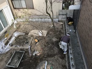 ブロック積みとフェンスの柱建てになります。