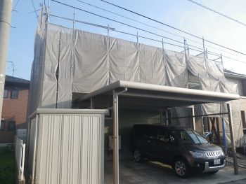 秋田市 牛島 二世帯 新築外構工事 カーポート テリオスポートⅢ