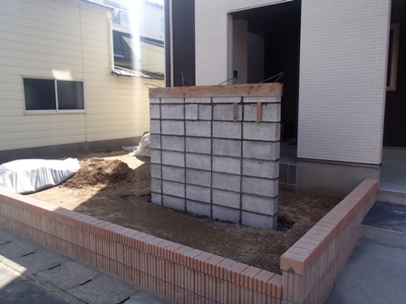 秋田市 牛島 外構工事 ファサード 門柱