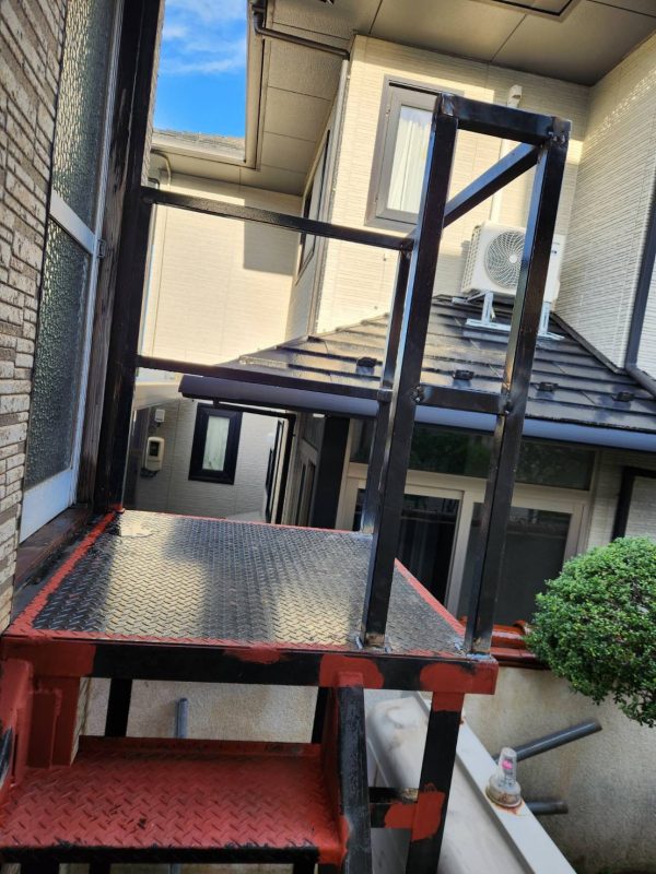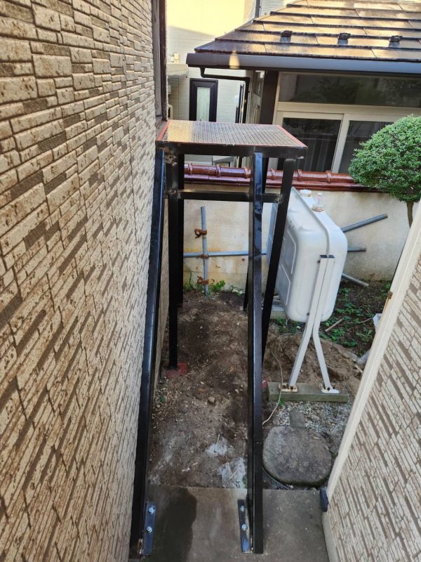 工場で作成した踊り場と柱を設置