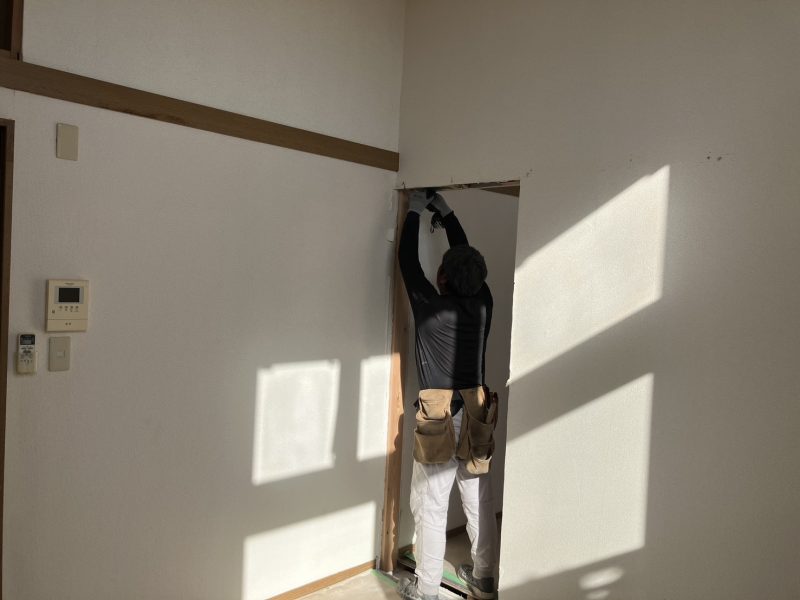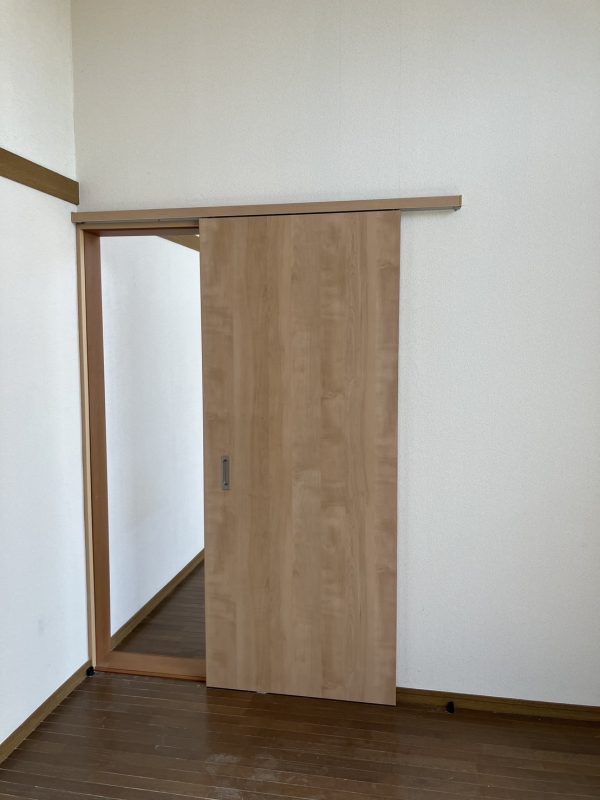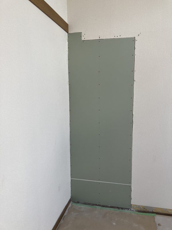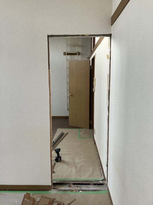 オーナーさんが以前に開口した間仕切りの引き戸を再度撤去し塞いで壁に戻しました。