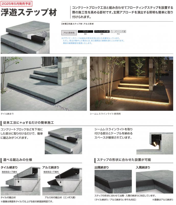試行錯誤してワンオフで作っていましたが、LIXIL新商品の浮遊ステップ材を見てきました